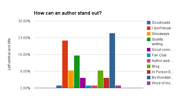 I’ve been avoiding writing my second book because I want a break from the craziness of the whole process. I suppose I will start that again when I have time this weekend. I hope I can get my act together. The sooner the better. I know it’s better to have multiple books and that when I actually do have fans they’ll want books faster, especially after the ending I have, I think I might…